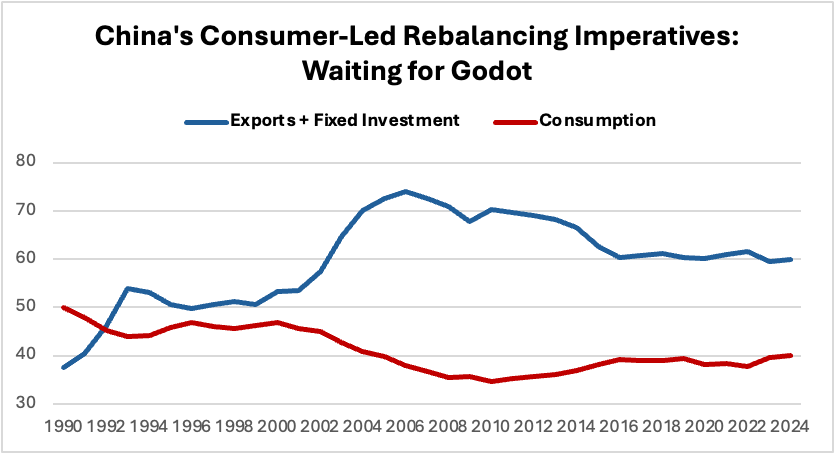 Chinese consumer-led rebalancing imperatives have been so logical, in fact, that I framed a very popular course that I taught at Yale for 13 years, “The Next China,” around this key theme. For the 1,400 students who took that course over the years (2010-22), my sincere apologies for having misled you that Chinese rebalancing was close at hand. I still hold out hope that such a day will come … eventually.